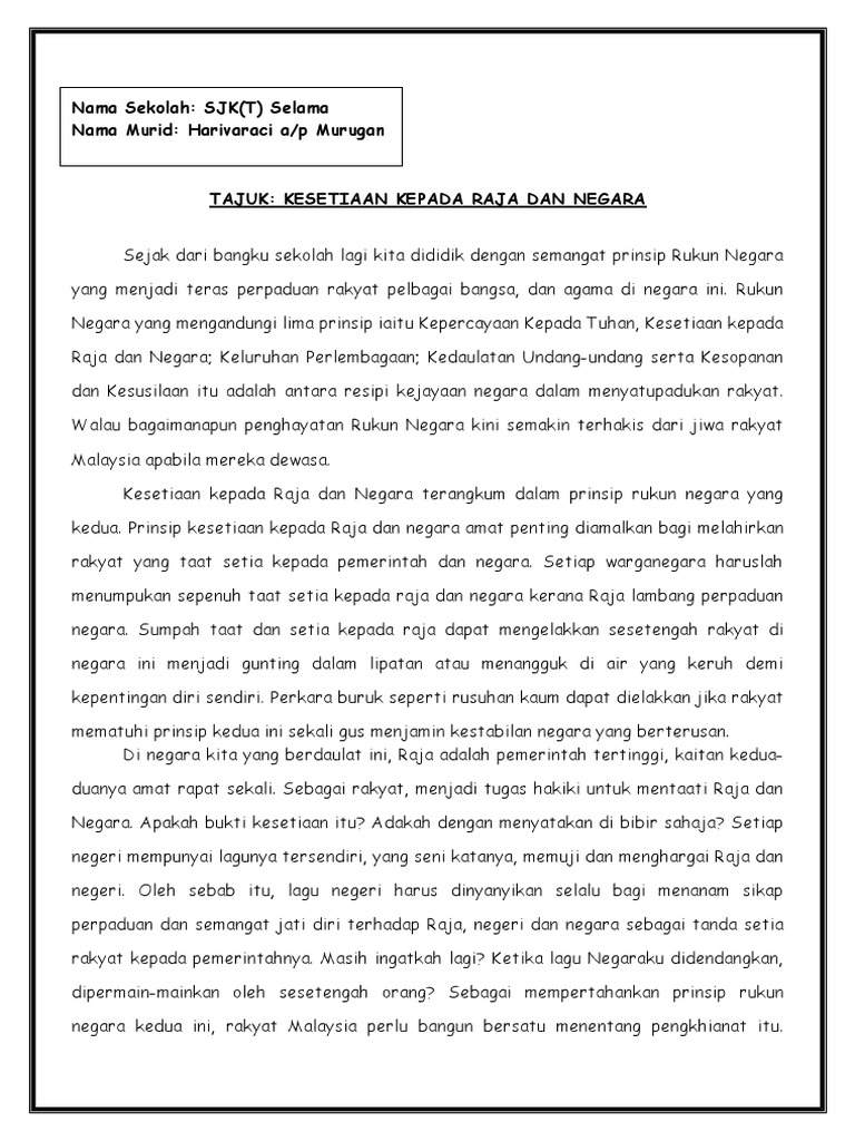 Esei Kesetiaan Kepada Raja Dan Negara Pdf